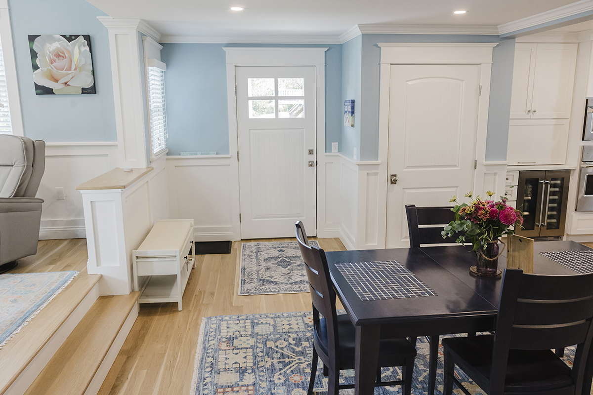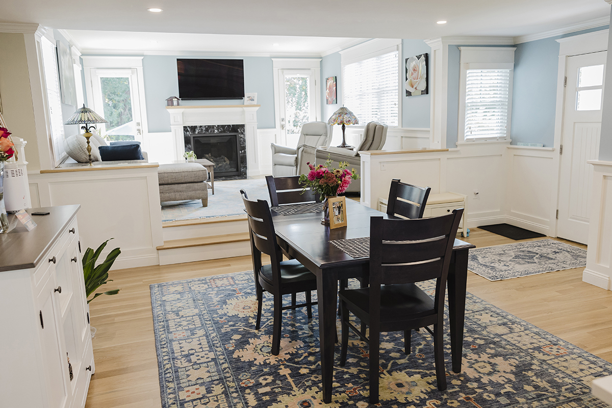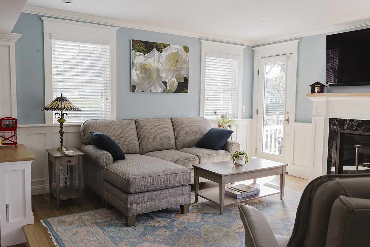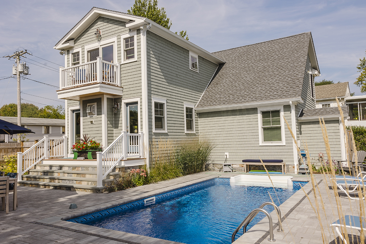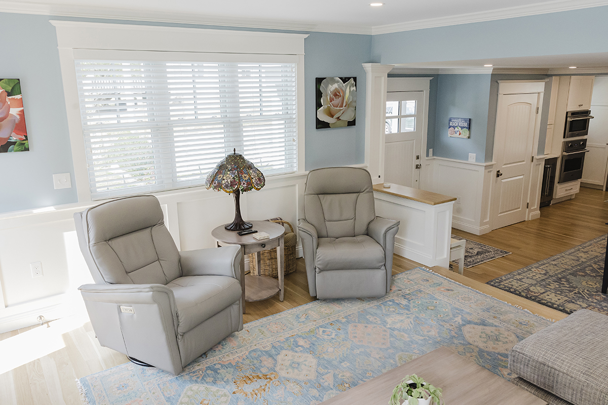 Complete interior remodel with a two-story addition for a living room and second story office. Complete landscaping with patios and walkways.