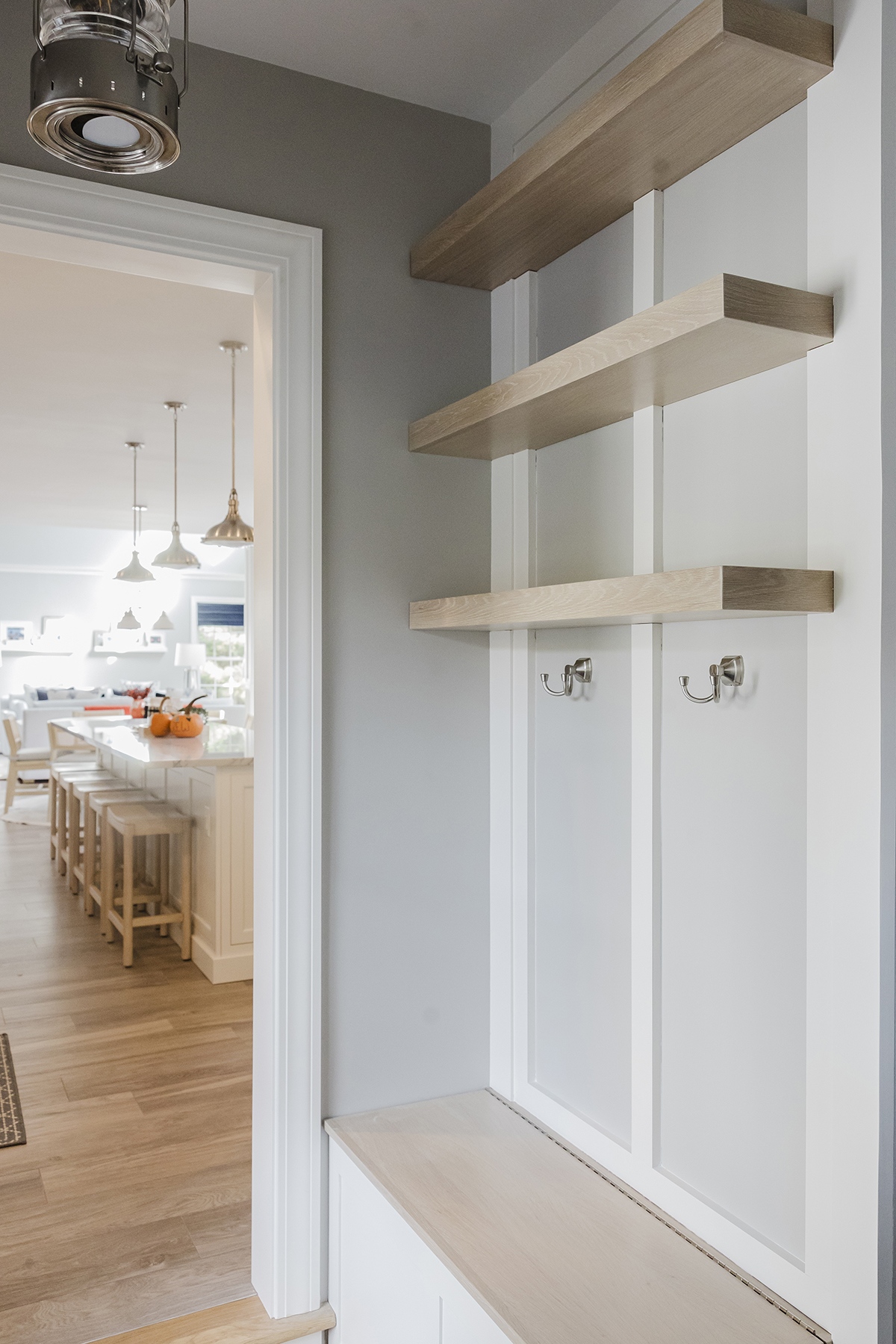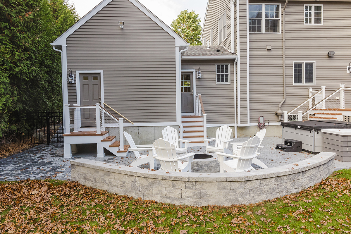 Complete kitchen remodel with custom cabinetry and millwork with built-in fish aquarium. Addition added for mudroom and an additional garage. Landscaping with patios and walkways.