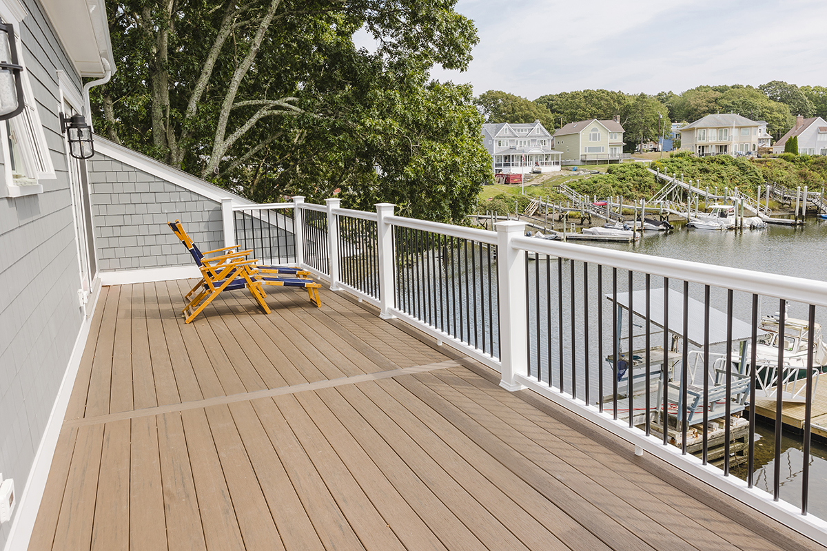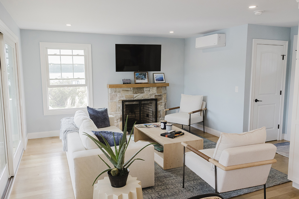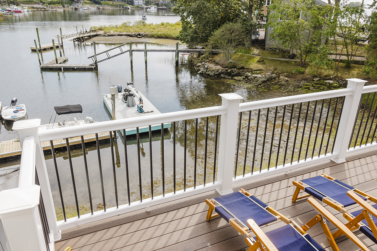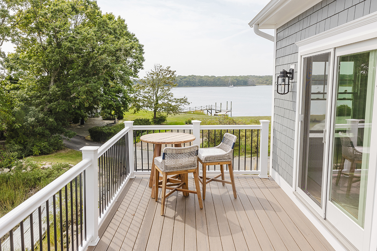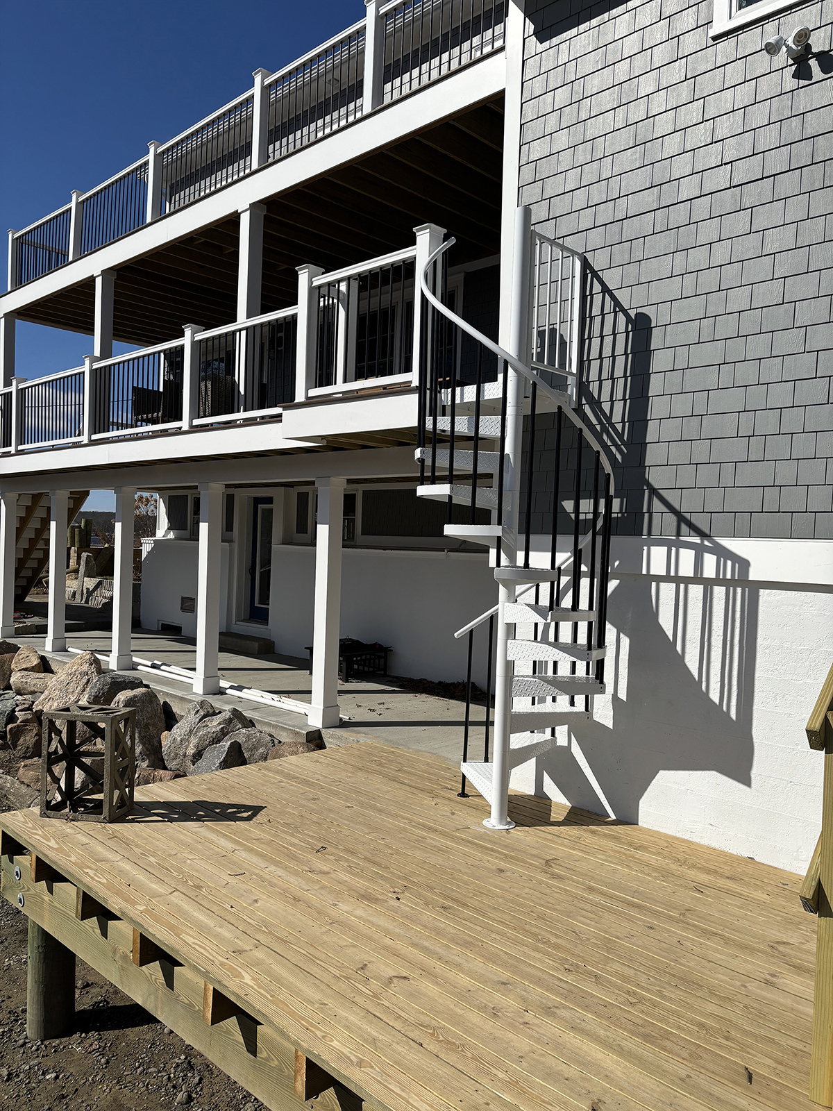 Original home teardown and complete rebuild. Required CRMC coastal permitting. Installed Helical Piers to support multi-story decks extending over the ocean bay. Thin stone veneer masonry chimney and complete landscaping.