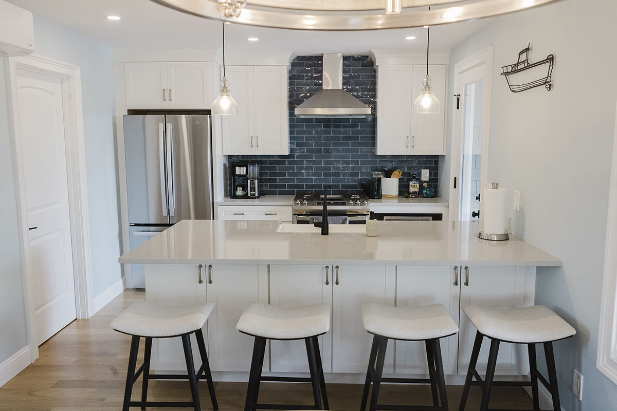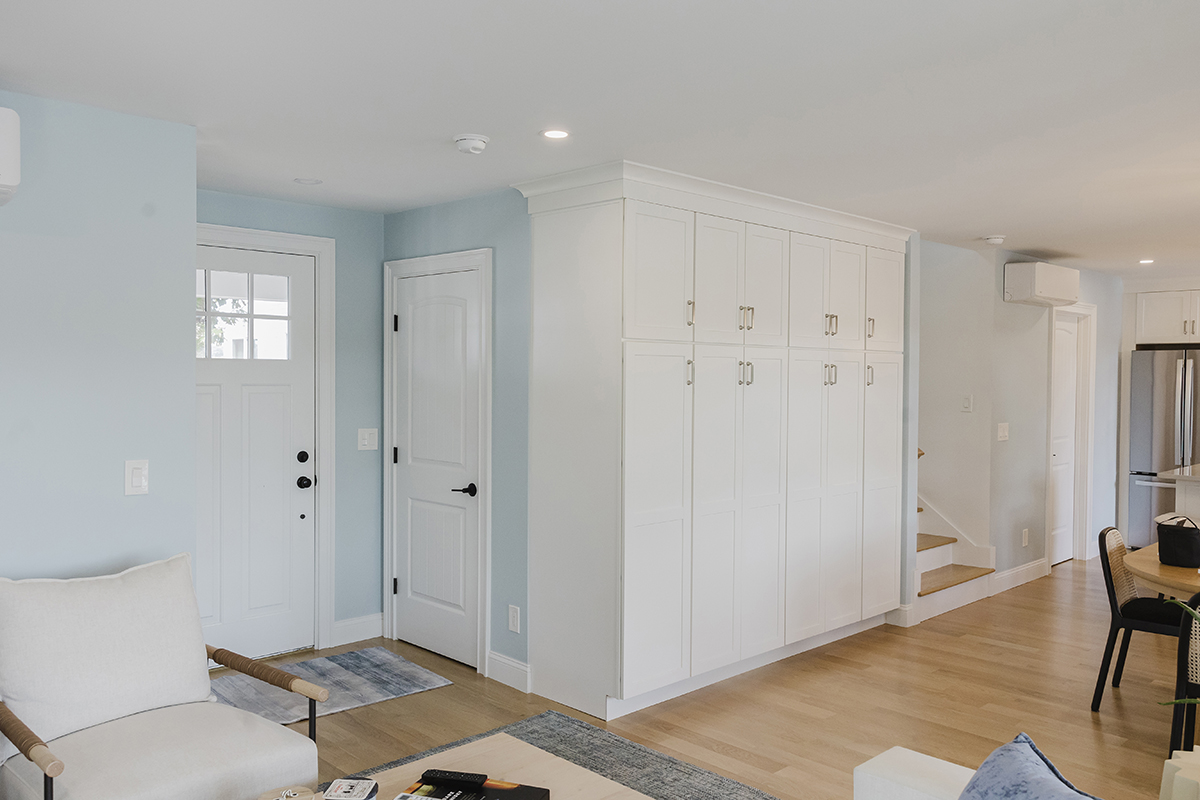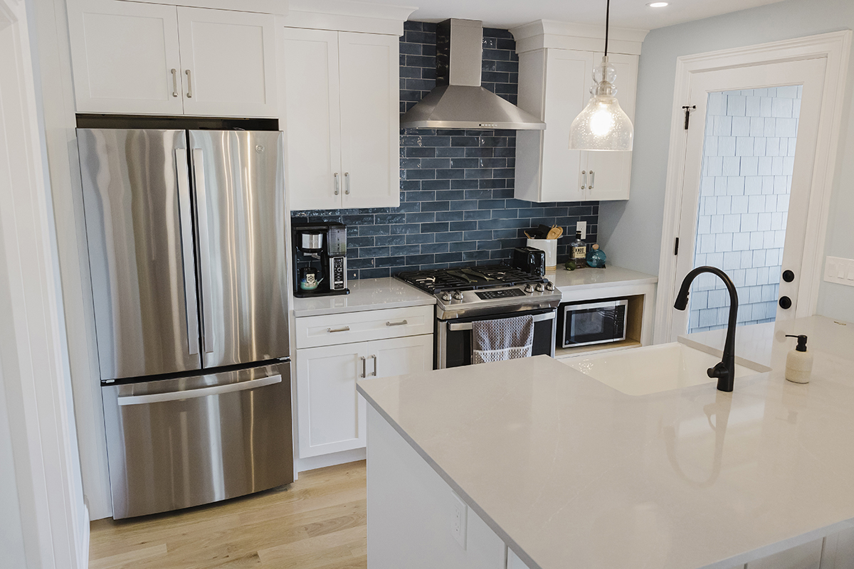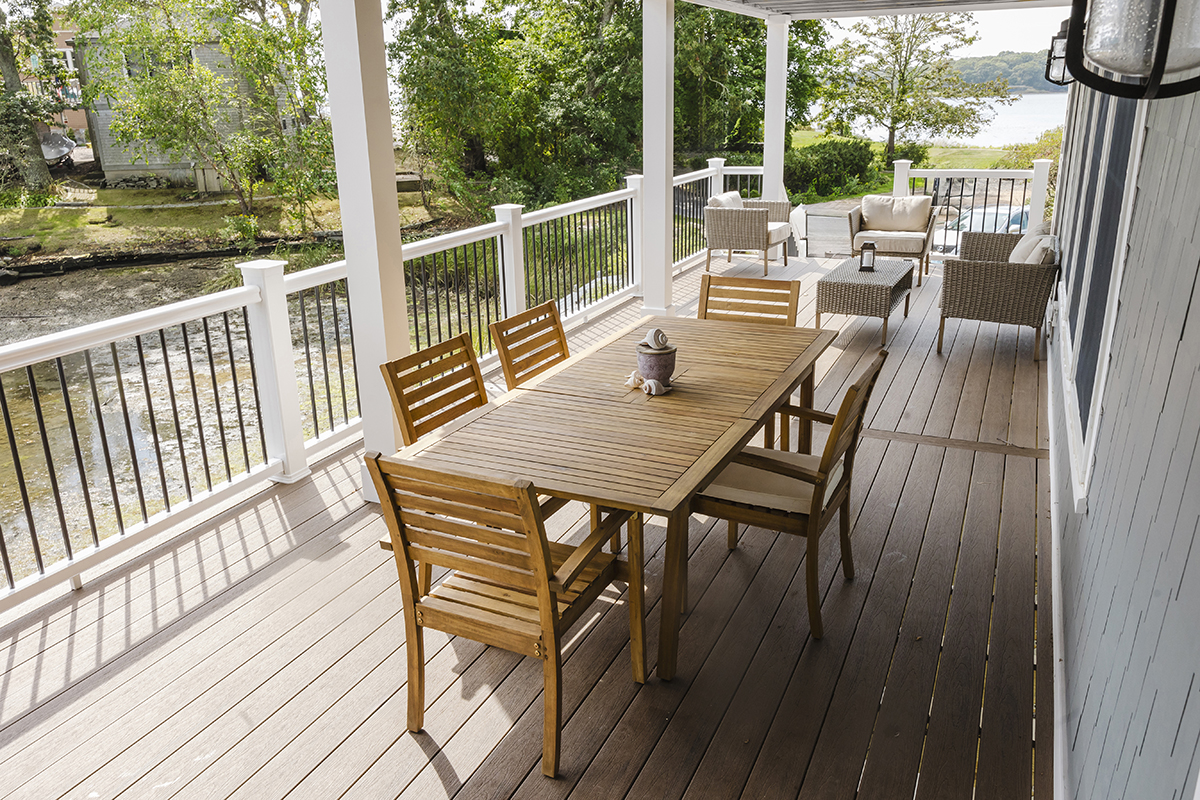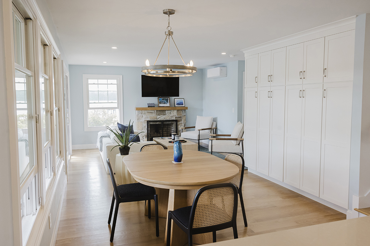 Original home teardown and complete rebuild. Required CRMC coastal permitting. Installed Helical Piers to support multi-story decks extending over the ocean bay. Thin stone veneer masonry chimney and complete landscaping.