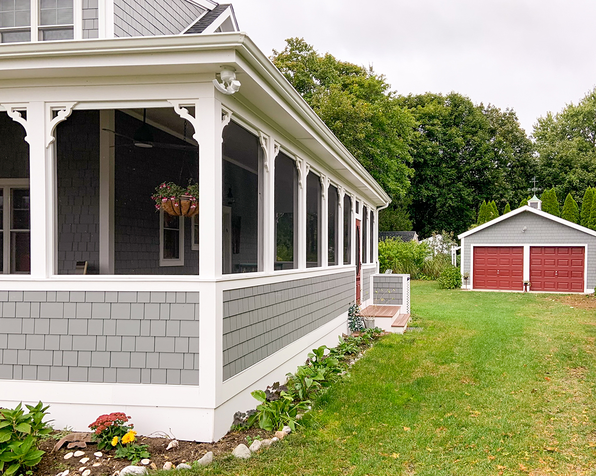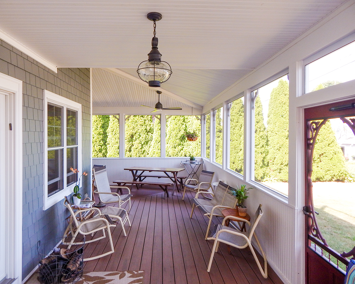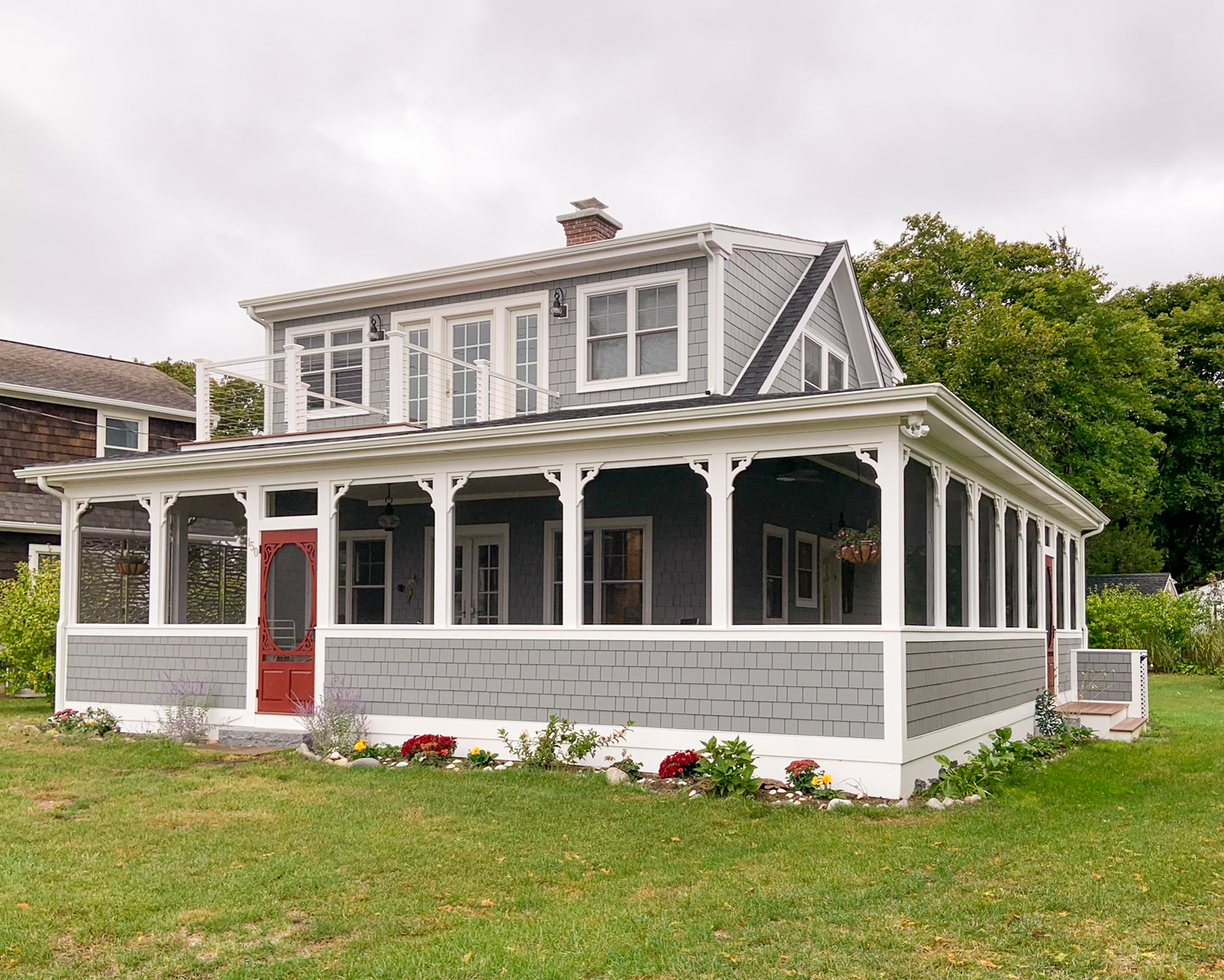 Complete interior and exterior remodel, reframed & improved support of first floor joist and deck within crawl space, added a complete second floor addition, and built and installed custom mahogany open staircase.
